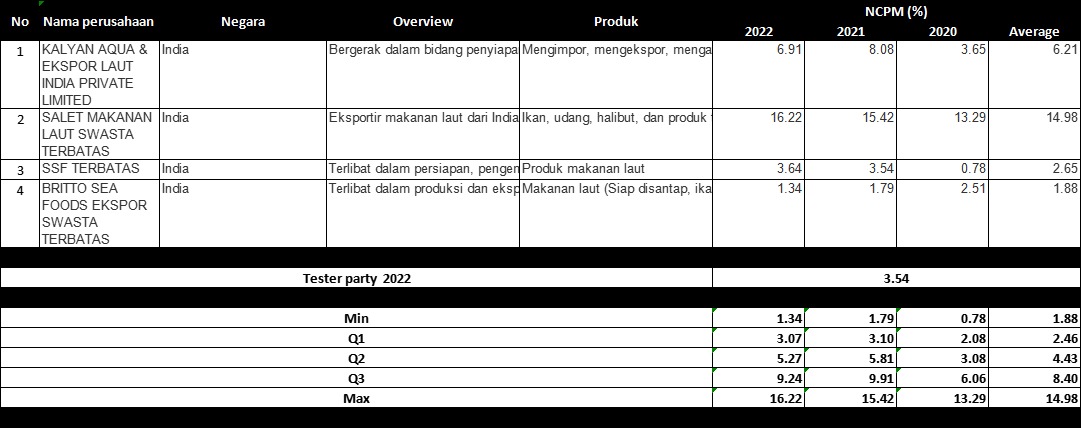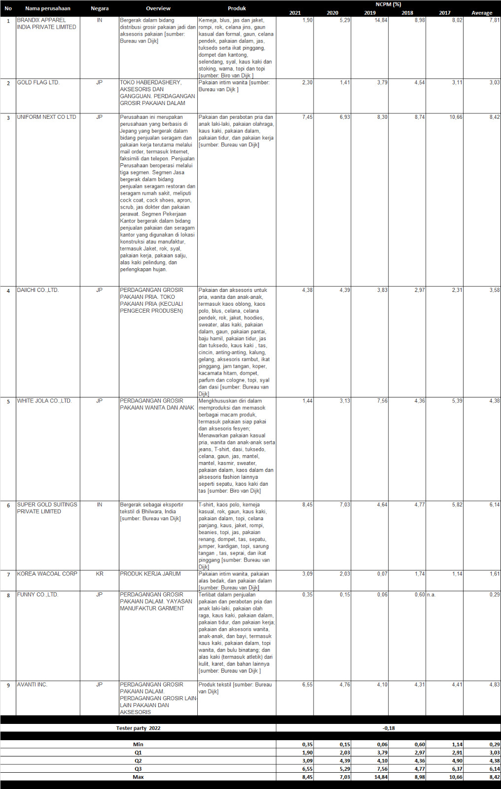 Contoh Tabel Interquartil Benchmarking BVD TP Catalyst